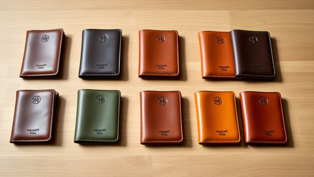 Think of a vegan leather wallet as a trusty shield that guards your essentials. I’ve found they offer comparable protection to traditional leather, thanks to modern crafting techniques that guarantee durability and water resistance. While they might not age in quite the same way, I believe they’re sturdy enough for everyday adventures. So yes, you can confidently rely on vegan wallets to keep your valuables safe and stylish.